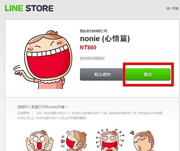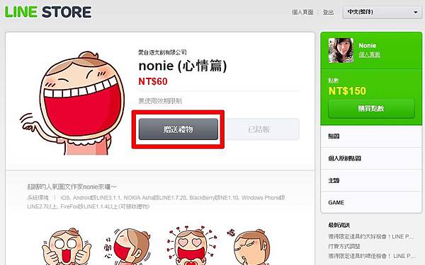 Step 9 加值完畢,耶~可以購買nonie的貼圖囉~